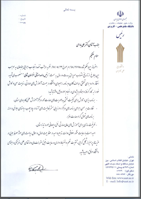 ابلاغ حکم ریاست دانشگاه علمی کاربردی خراسان شمالی
